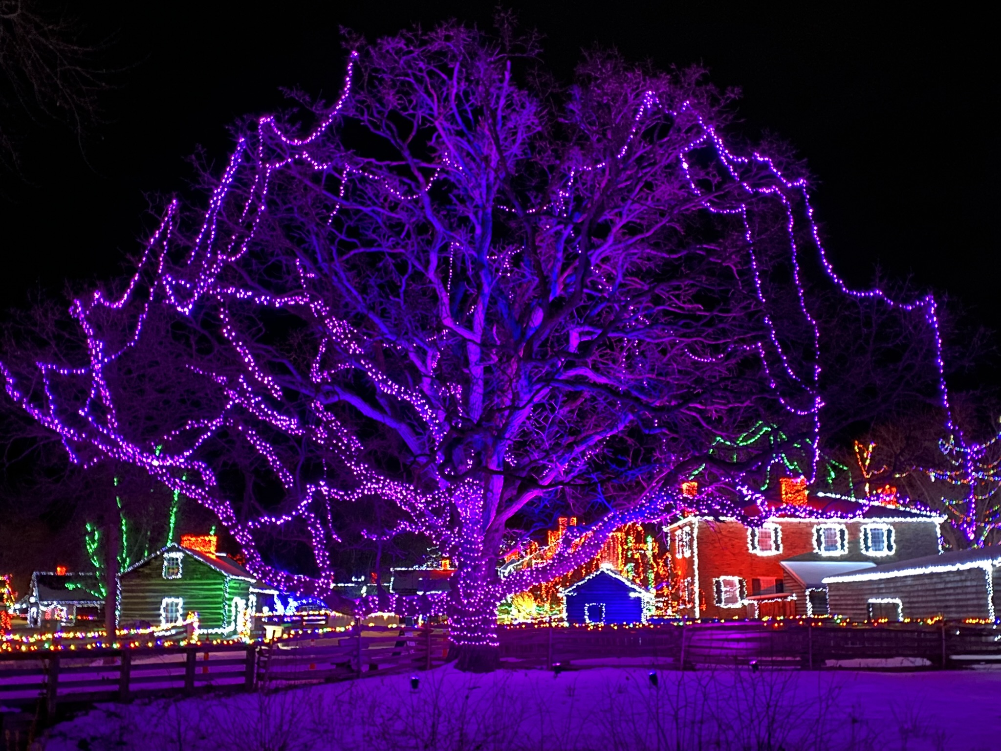 Carpooling with Sue, we arrived at Upper Canada Village by 5:00ish. Driving the scenic route along Hwy-31: the clear skies shone brightly with a glowing red & purple sunset as we passed through rural settings on the way to our venue. Upper Canada Village was totally lit up one last time for the season when we arrived – an impressive series of lights that I have not seen before! We had a few minutes for a short stroll through the Magical Village – and it truly is a site to see: worth the trip itself!