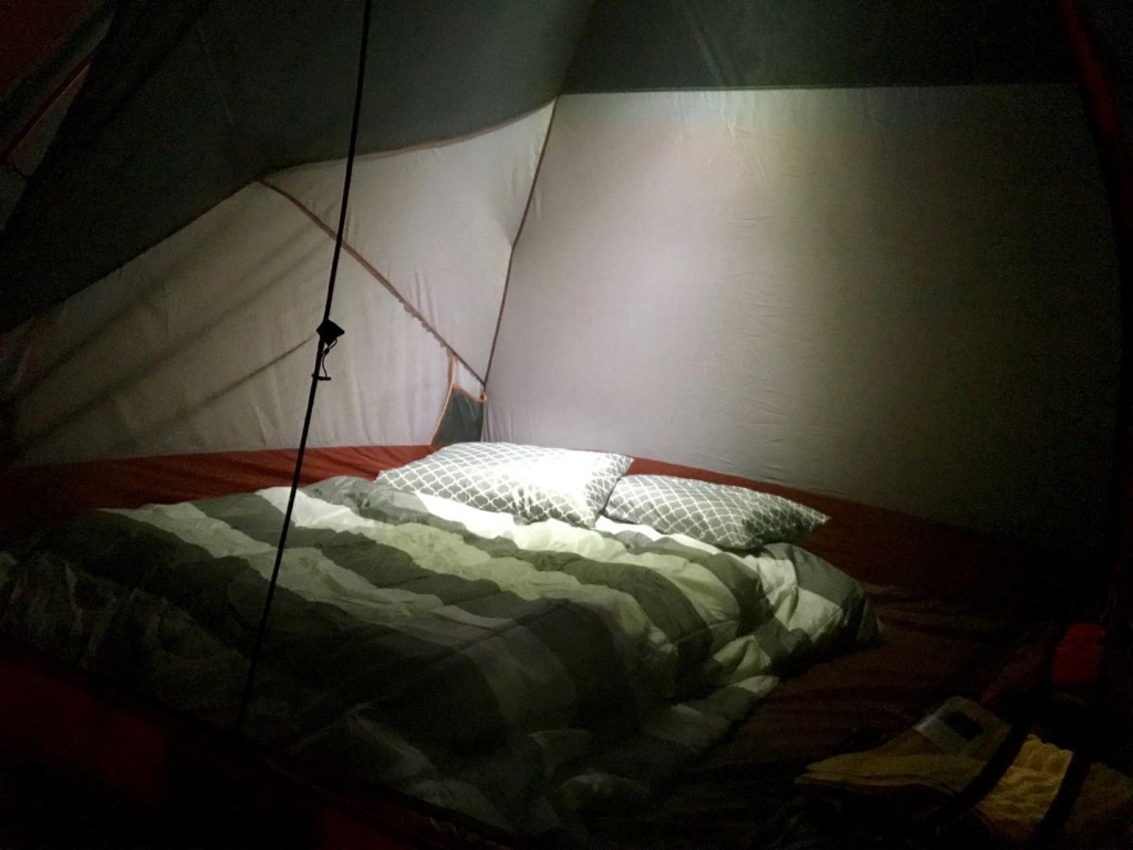 I always said I would never sleep in a tent before a race but we were only just camping. To be honest it was more like glamping. We bought a huge Marmot Orbit 6 tent for the two of us. You could seriously park the SUV in the vestibule. We had an electric site so we brought a kettle, a toaster and a table to put them on in the vestibule. We had an air mattress and with the trip to Walmart we even had colour coordinated bedding and three sets of pillow cases. We brought food, pots and pans too but we forgot the stove!