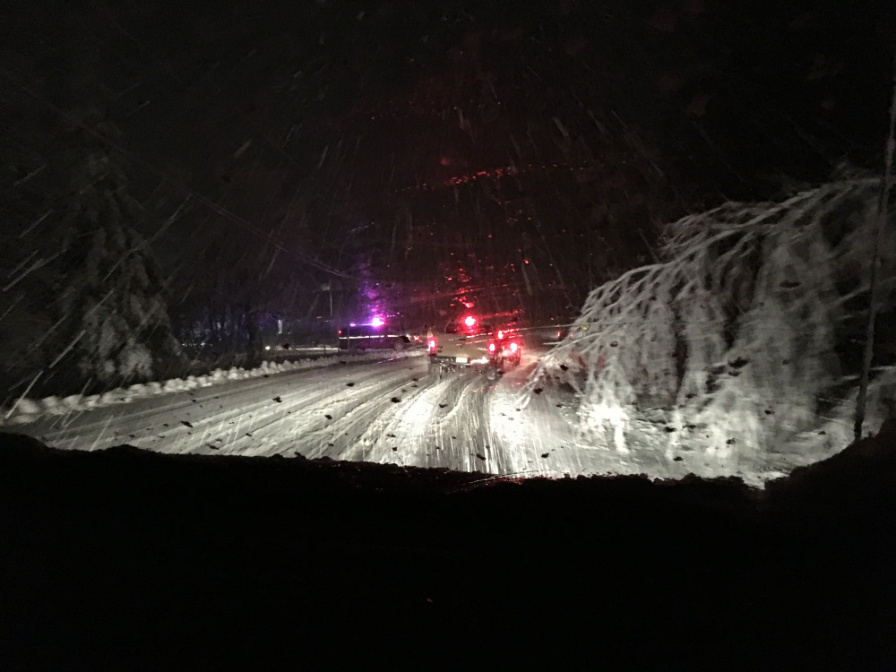 We drove back to the hotel to shower before the banquet thinking the weekend adventures were over but we were wrong. We were staying in Lake Placid at the Cascade Inn. Taking a shower was uneventful (great water pressure!) but shortly after that the power went out. Then it started to pour down. The rain was so heavy that we needed an umbrella to get from the car to the banquet. While we were in the banquet they announced that ironically it was now snowing. When we left the banquet it was a total white out of thick, heavy (perfect for snowballs) snow. On the drive from Saranac Lake to Lake Placid Harold drove and tried to see the middle of the road to make sure we did not cross it. I tried to spot the side of the road to make sure we did not go off it. There was nowhere to pull off so we kept going slowly. There were big trees falling down on to the road. We passed a couple which were completely blocking the other side of the road.