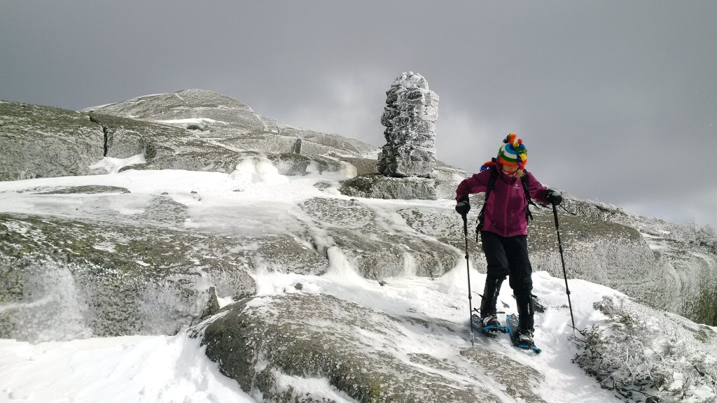 We awoke to a beautiful blanket of snow which would have been perfect for a snowshoe race no shoveling required! So we put on our backwoods snowshoes and climbed Wright Peak.
