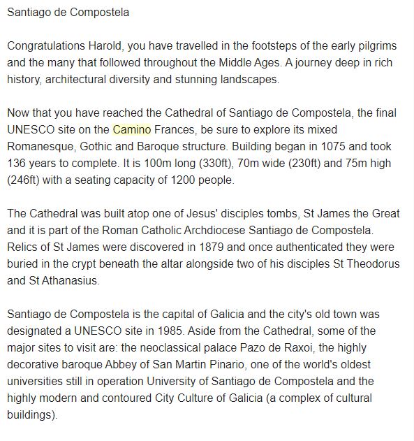 I selected the Camino de Santiago trail, which provided a more modest 772km route of a bucket list trek I’d like to do in person some day. Tracking your progress along the virtual trail using Google Street View with the App kept things interesting, and let you look around the towns along the route. A bonus feature for the CONQUEDOR series is that you also get ‘postcards’ along the way – 13 in total for this trek. Mock-up postcards from yourself and a brief description of the historic significance is a welcome break in the news.