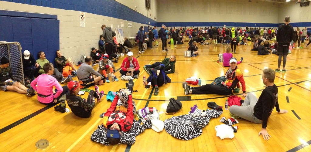 We put on our fancy pre-race warm clothes direct from value village and set off!