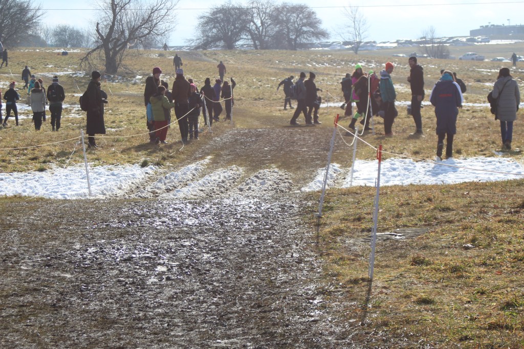 Our race was scheduled after the U16 and community races but before the big ticket JR and SR men’s and women’s events. Good news because I did not have spikes and as I recall each race adds a little more depth to the mud! After a somewhat brief warm-up we watched the community 2.5 and 5k races. The winner of the women’s 5k was an impressively fast 12 year old who ran 5k XC in 18.48. I think we will be seeing more of her!