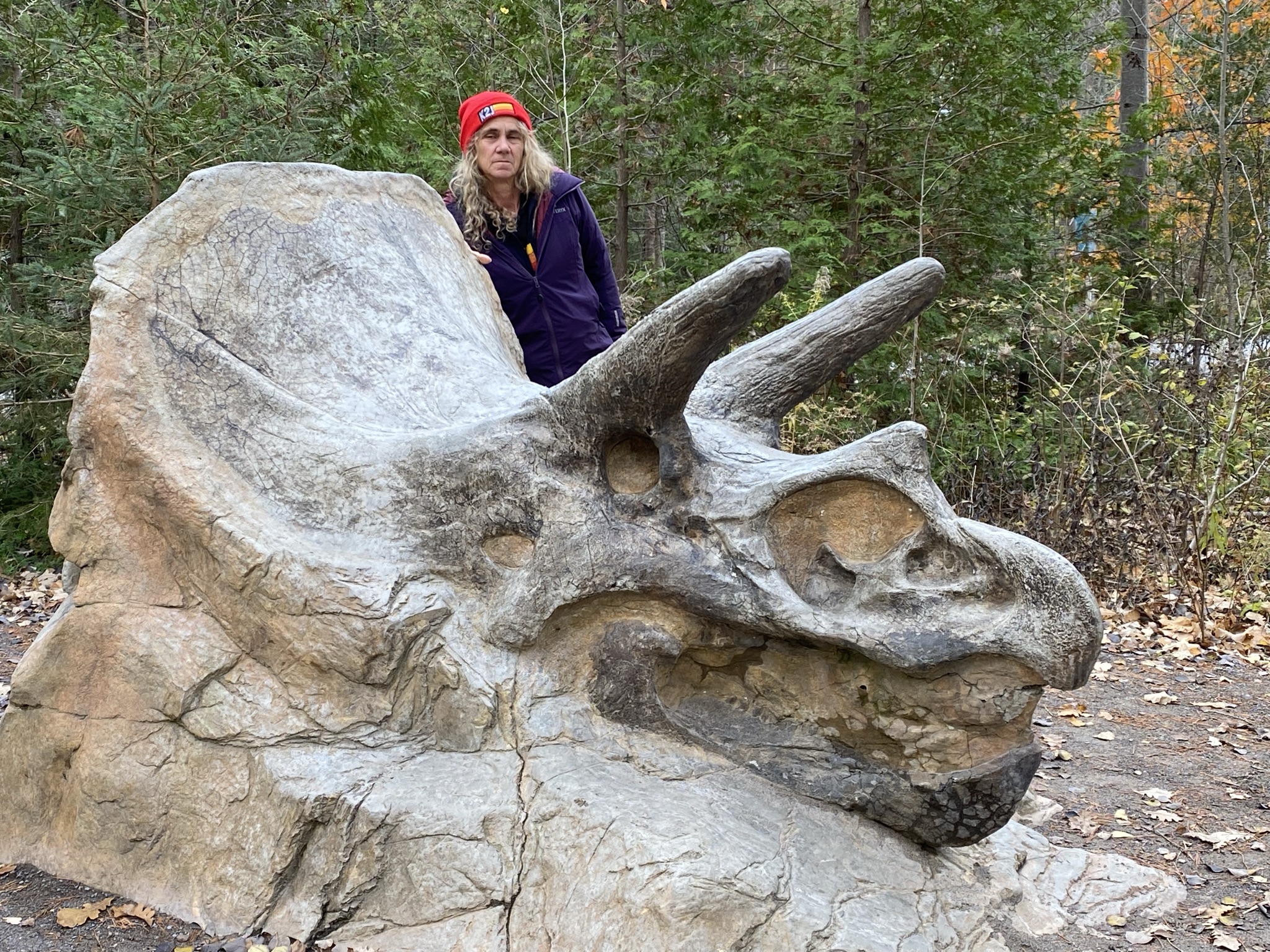 As race day approached, we watched the weather, and the Fat Ass Facebook and emails – definitely looking like there was going to be water on the ground. Weather was looking cold, but not freezing. Also looks like we were going to get precipitation on race day. This made packing tough, and we both brought along lots of layers in our overstuffed bags, and a wide range of footwear. We headed down to Trenton on Saturday after attending to a few needs around the house. After a ~3hr drive, we arrived at our destination, and checked out the race venue. Lots of markers and flags at Batawa Ski Hill, though we could not really make out where the course was featured. No worries, we did a quick tour of the area to become familiar with where everything was (including the Dino Park), and headed off to do a bit more exploring, and then settle down for dinner and a restful sleep.