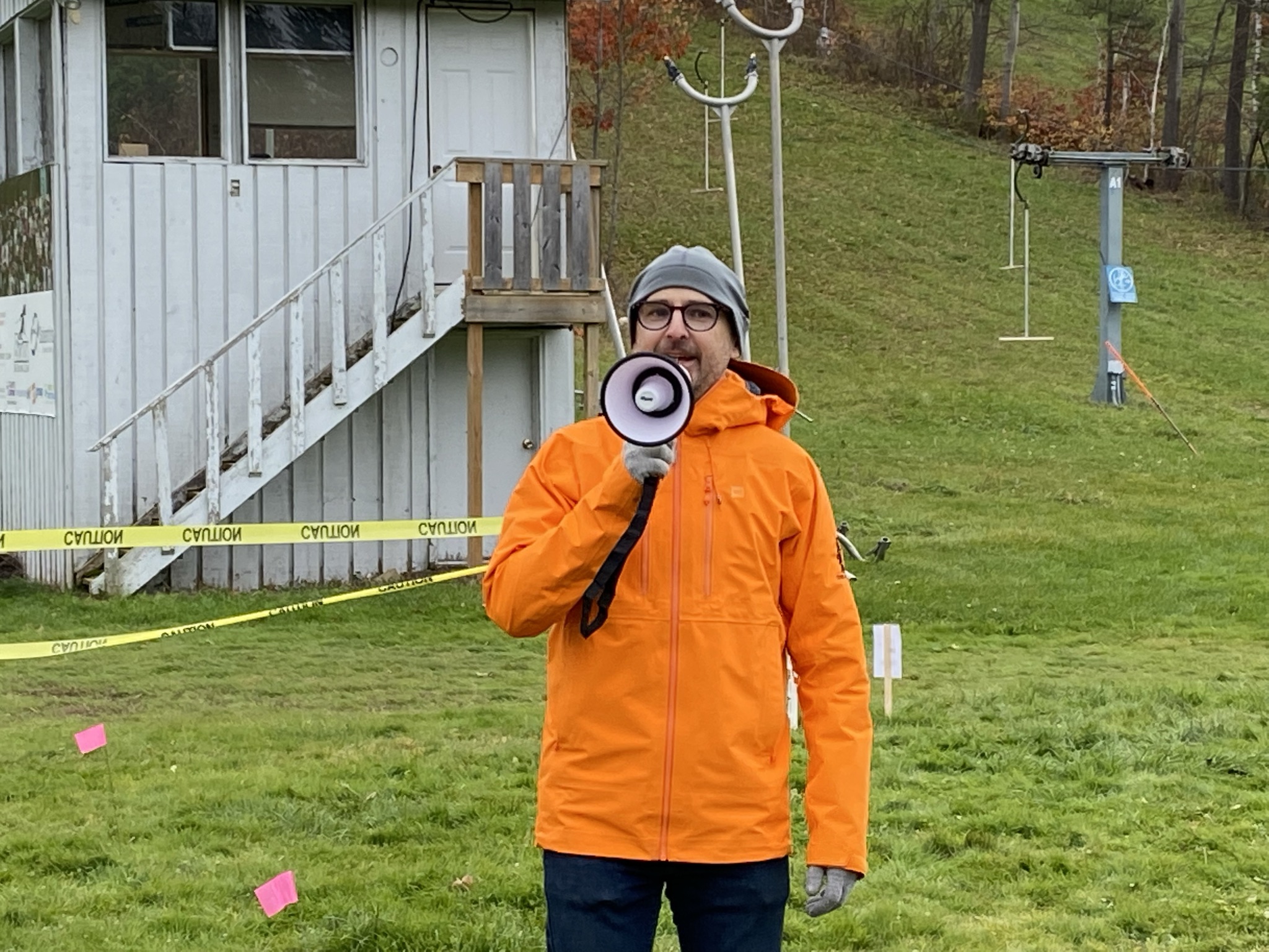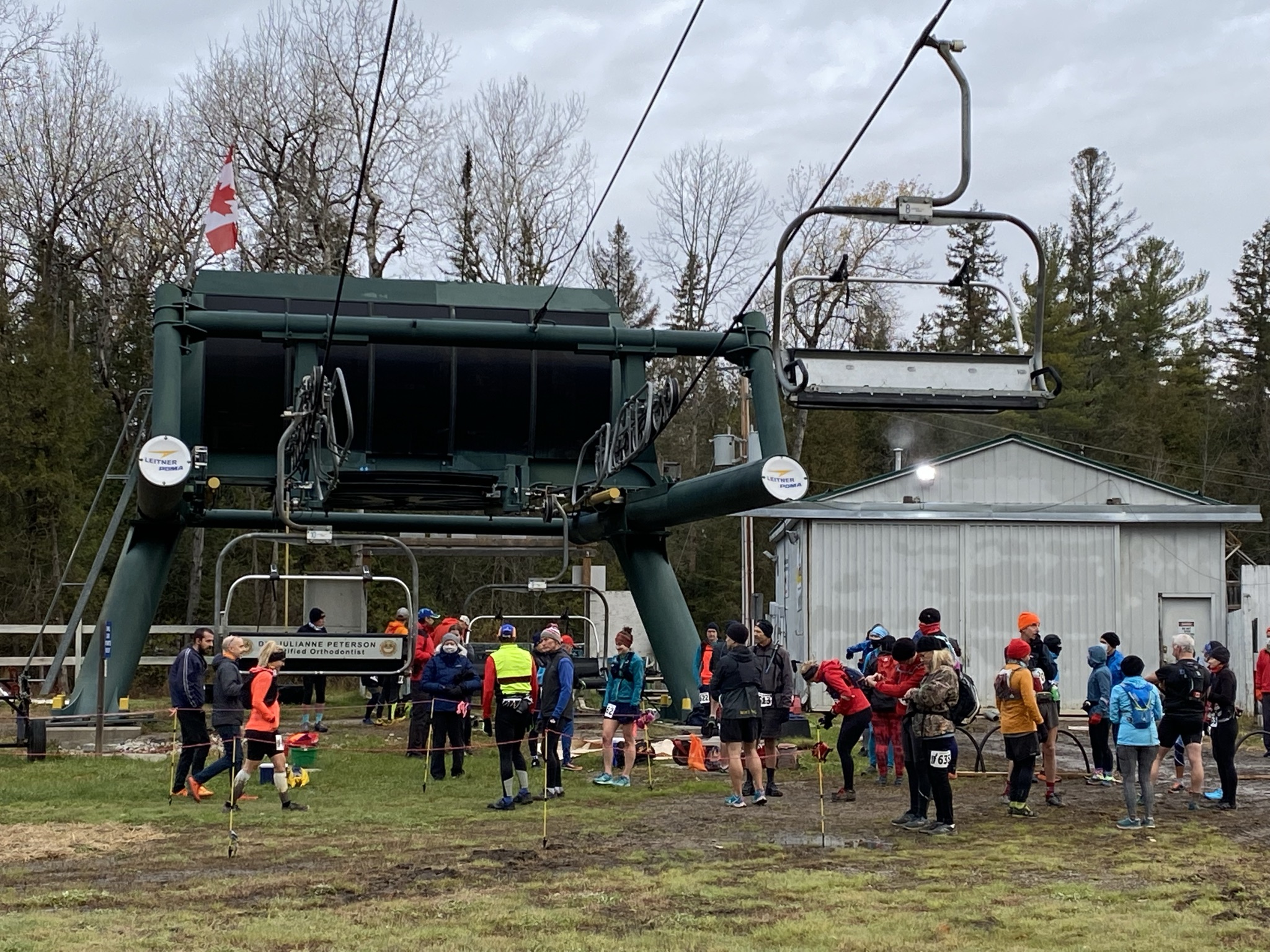 Heading back to the car in the now overflowing parking lot, I prepared some warm cloths and an umbrella to leave at the finishing area after the run – clouds were rolling in and the weather looked increasingly uncertain. Leaving my extra warm & dry gear in a plastic bag at the start/finish on the ski hill, I was ready to go!