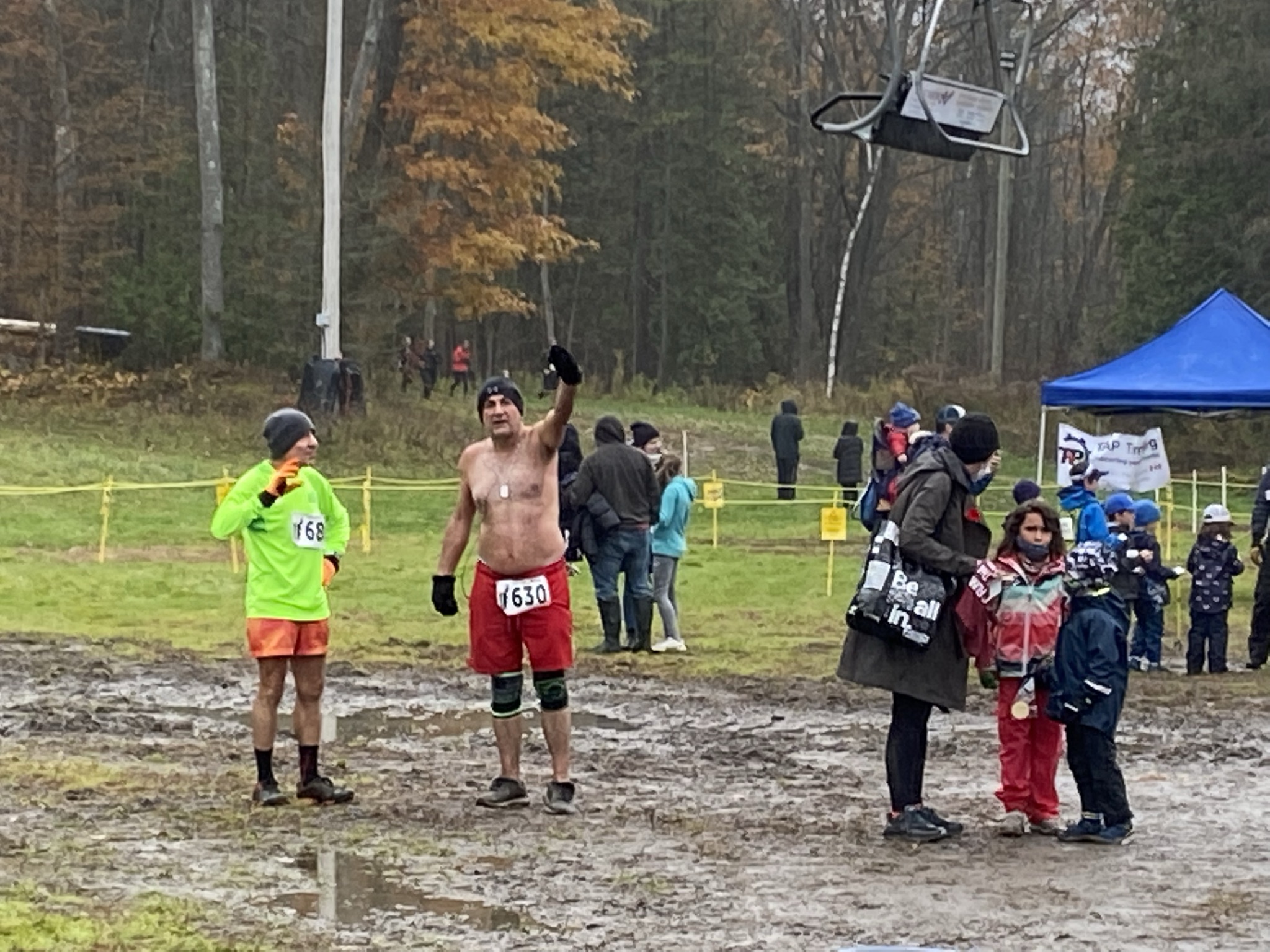 It was a great time when Judy finished. Tired, wet, and very muddy, we did a quick transition into some clean dry cloths – and headed back to the ski hill to pickup some Rally Beer samples. Great sponsor!