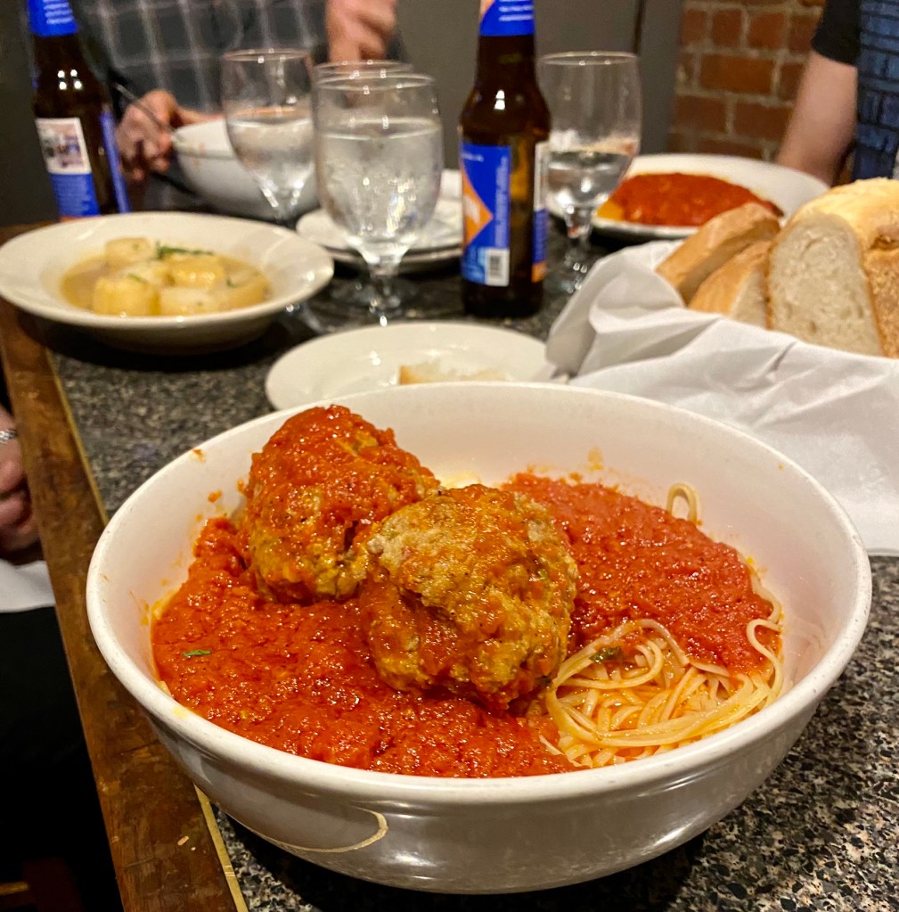 We had a group dinner at Mother Anna’s in the North End. They were friendly and accommodating: we even got a private room for our group, which was great. We will go back next year.