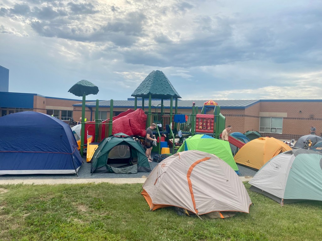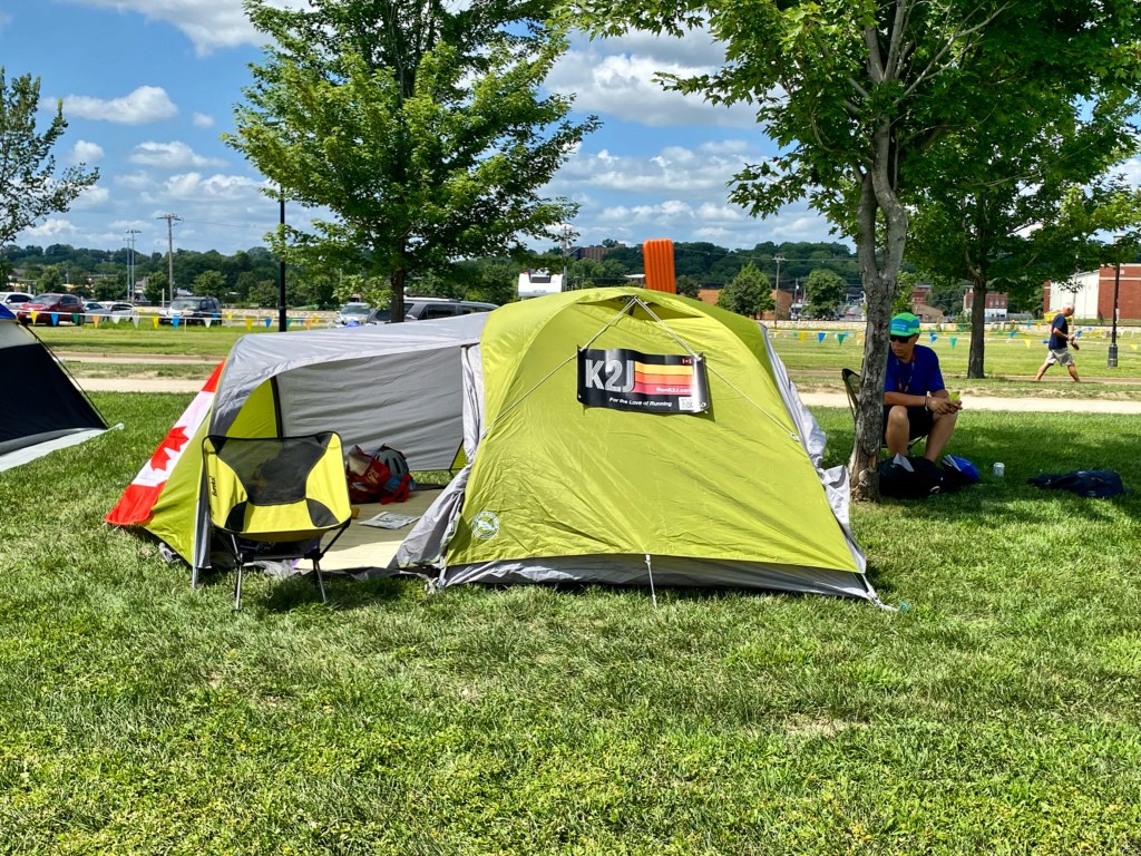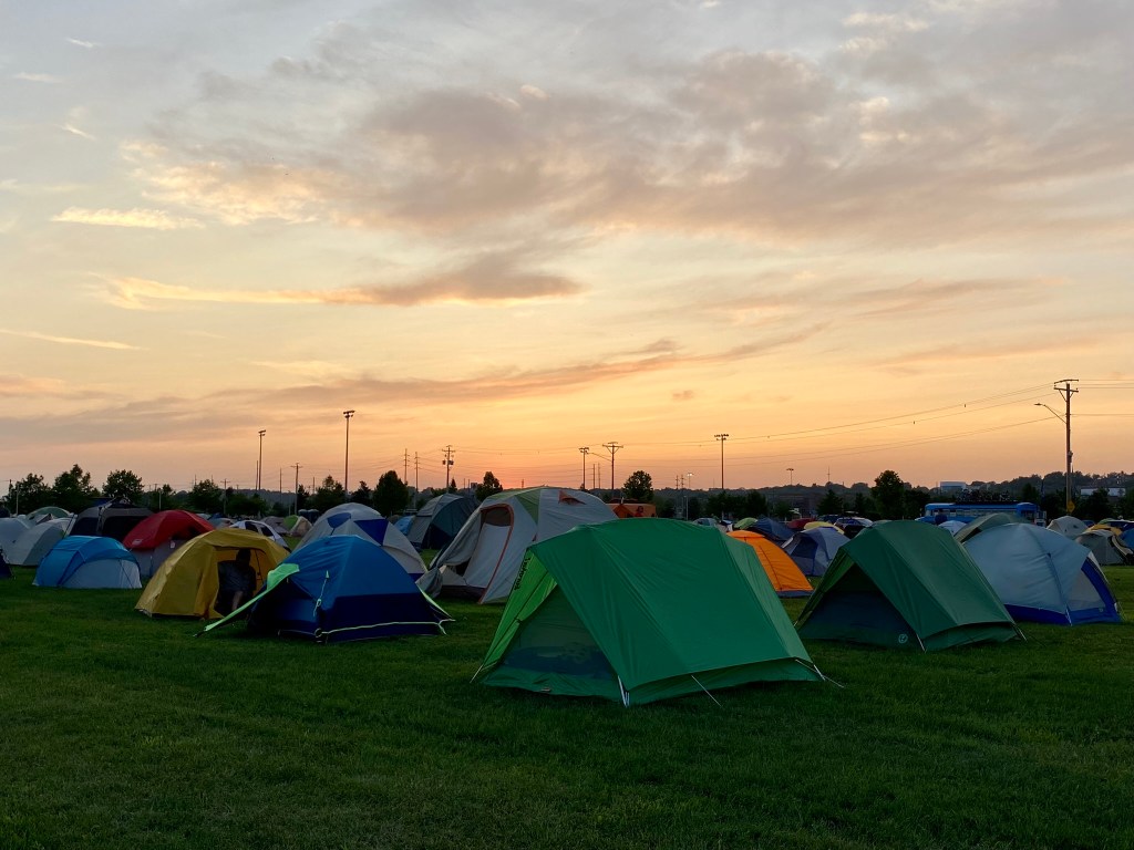 We camped the first night and all of the other nights, for free in a public park along with many, many other people. You can pay extra for a charter service who will move your bags for you. The advantage is that you do not have to get your bags from the general transport trucks and you do not have to camp with the masses. Some of the charters will also put-up your tent, provide you with a tent, have showers, cold drinks and charging stations. The more you pay the more you get.