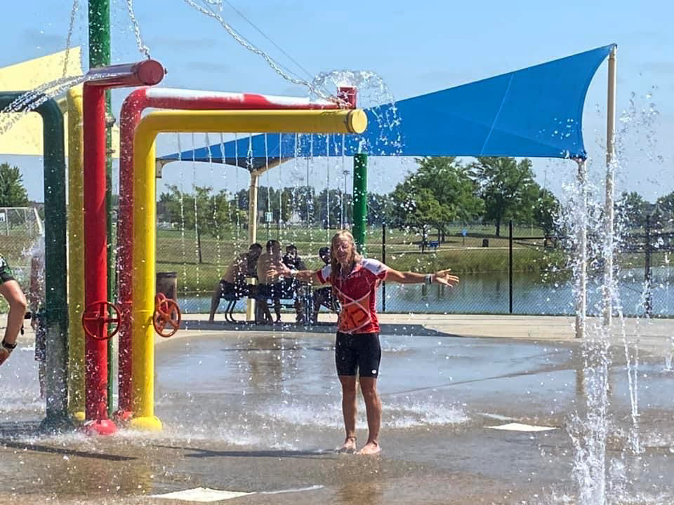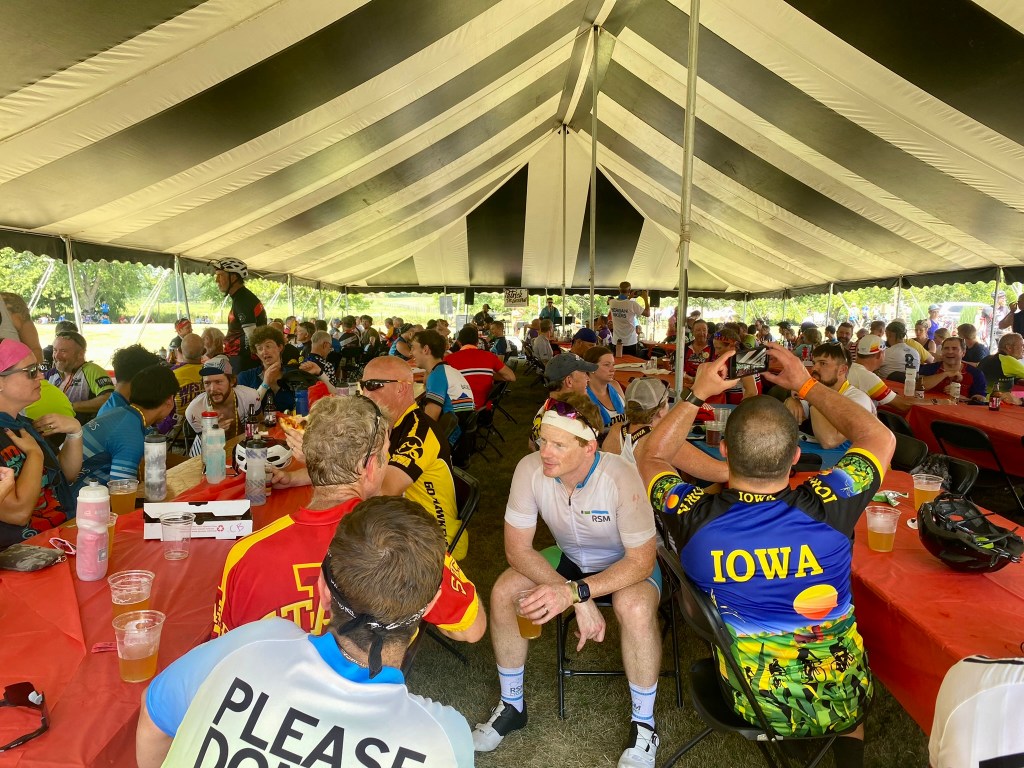 Coralville had a great set-up once we got there. Everything was together and we were camped beside an outdoor pool with a water slide. We ate dinner at a local grocery store. Not odd for RAGBRAI