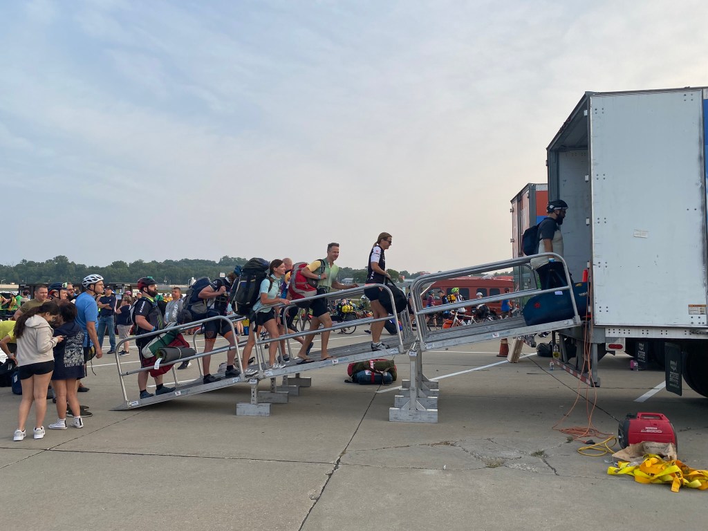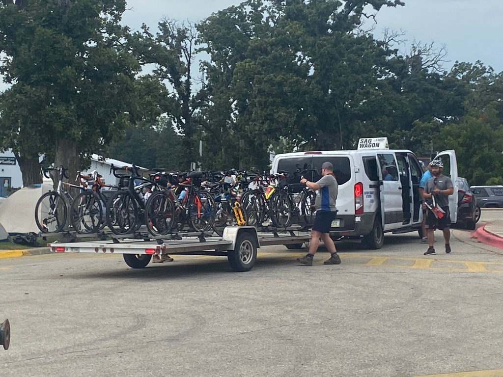 SAG were busy early and later in the day they were using school buses for riders and transport trucks for bikes.