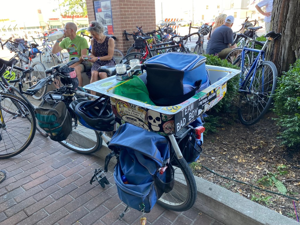In addition to the registration fee, we paid $100 US to park our car for the duration of the ride, and $205 US each for transportation for us and our bikes from the finishing town Davenport, to the start in Sioux City. We used ARGO- Riverbend