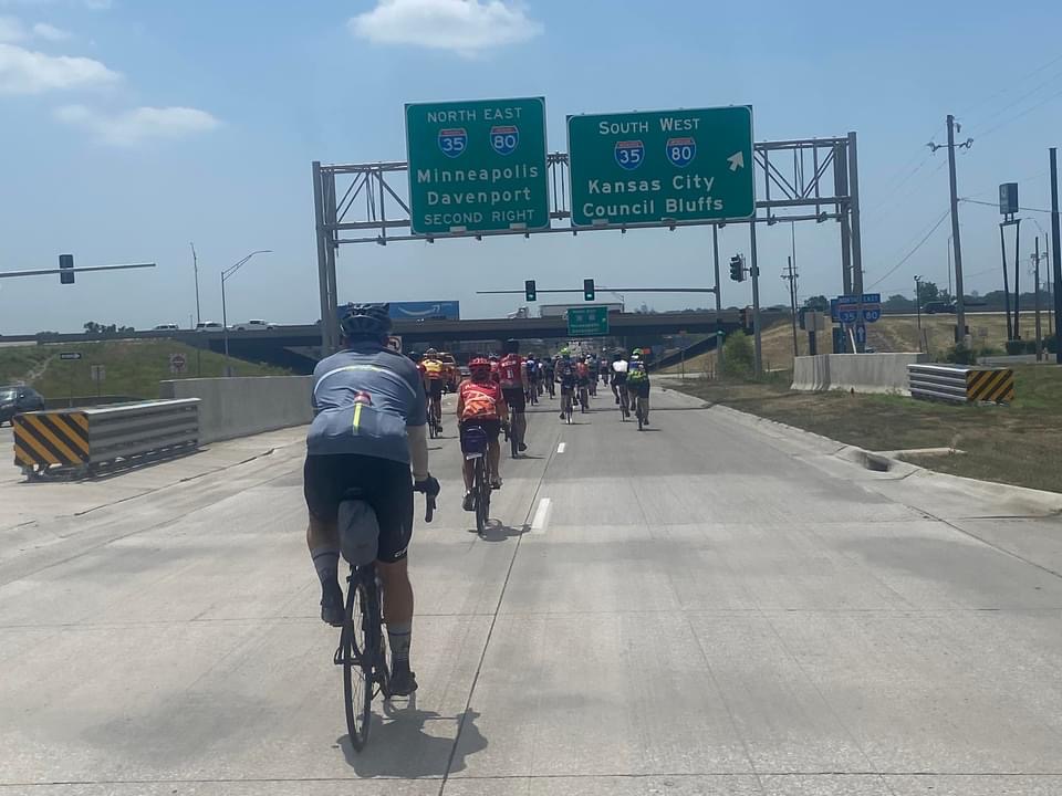 The final ride into Des Moines they closed a 6 lane highway for us. Had more foam and Lynyrd Skinner was on stage.