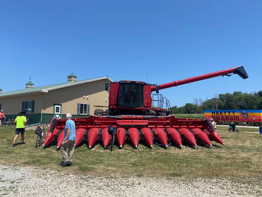We rode 863 km (a little over 514 miles) in seven days of riding. This year’s route was officially 500 miles which is a little longer than usual because it was the 50th. We also chose to do the optional loop on century day. The average length is 468 miles. Daily rides were 90-163 km. Iowa is NOT flat.