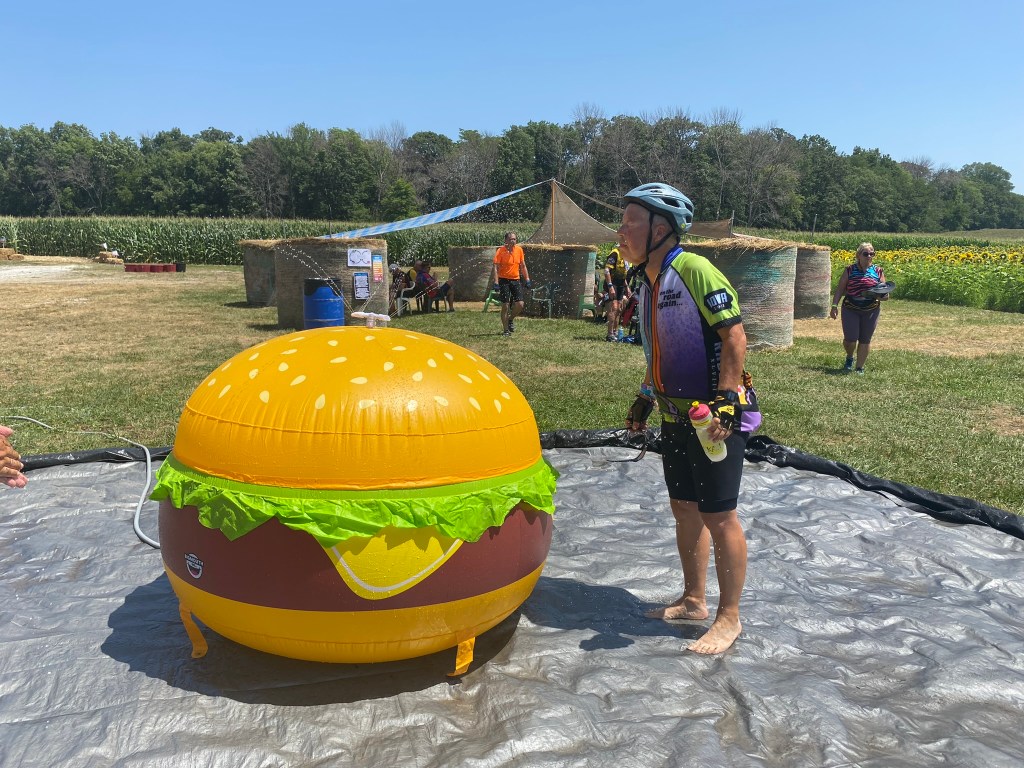 If there was a town, a big party or an obstacle things often slowed to the point where you had to walk your bike. Each day there were multiple “pass through towns” which were 10 to 40 km apart. Between the towns there were small stands many with cute kids selling lemonade and farm parties with giant beer tents, bands and food.