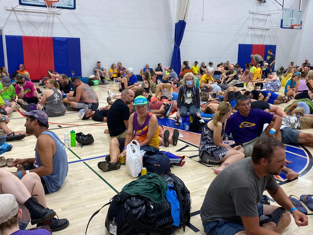 We were up a little after 5:00 am the next day. Partly because we wanted to get an early start and partly because the campsite was buzzing by 4:30 am. It looked hot and the route opened at 6:00 am. Unfortunately, everyone had the same idea and by the time we made it to the line to load our bags onto the truck it was very, very long. Someone claimed it was 1 km but I think that was an exaggeration. It took us over an hour to get to the front and the bags were heavy. There were both under 50lb which was good because they were checking.