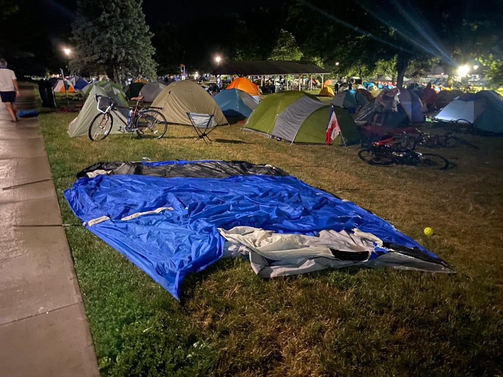 We had quite a nice spot along the edge of the Mississippi the first night and we met some interesting people. We walked into town and found a great Thai restaurant. Not the best night’s sleep as we were beside a train track and concerned about waking up in time to pack the tent and take a shuttle to the bus.