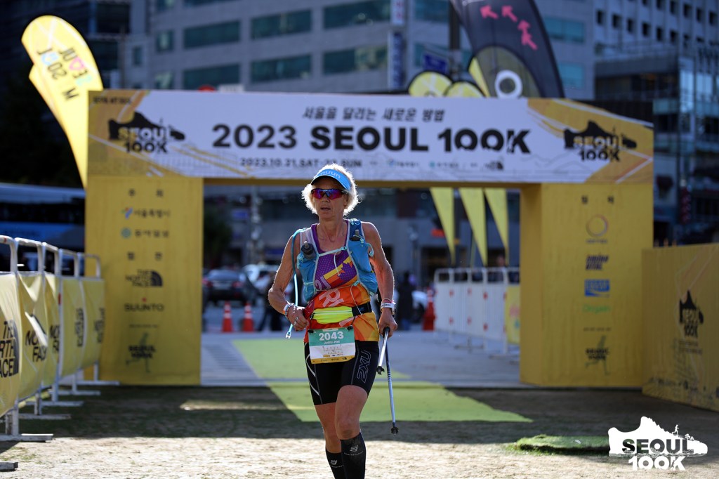 A unique ultra which starts in downtown Seoul, South Korea and goes up into the mountains. Total elevation gain for the 50K is 3260m. A tough race with many sets of stairs. Well organized, well marked and one of the hardest events I have ever done. Finish time 10 hours 17 minutes 20th out of 52 women and 124 out of 248 finishers.