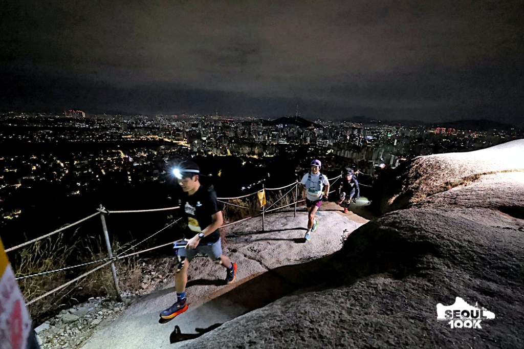 The gun went off and we started running though the streets of Seoul. The police stopped the traffic for us. There were volunteers at the turns and the first km was basically flat. After that it went uphill. Into the mountains in the dark. We soon hit the first of many, many sets of stairs.