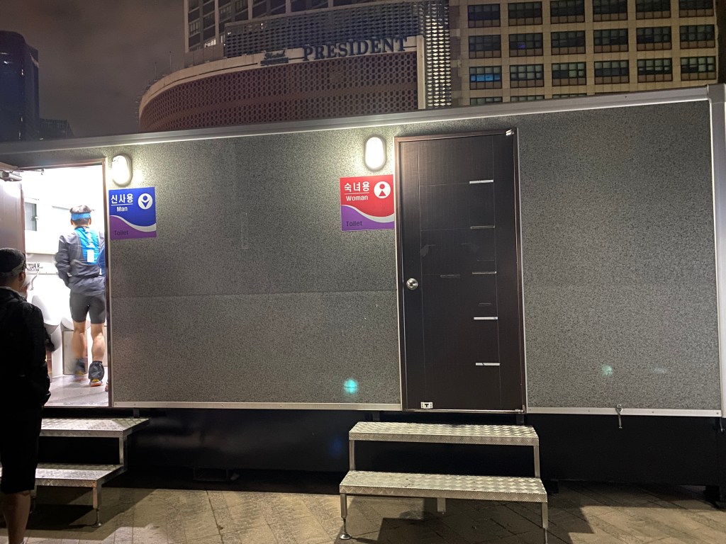 Sure enough, Seoul Plazza now looked like a race start. There were even some announcements in English. There was a change tent, bathrooms, and a bag check.