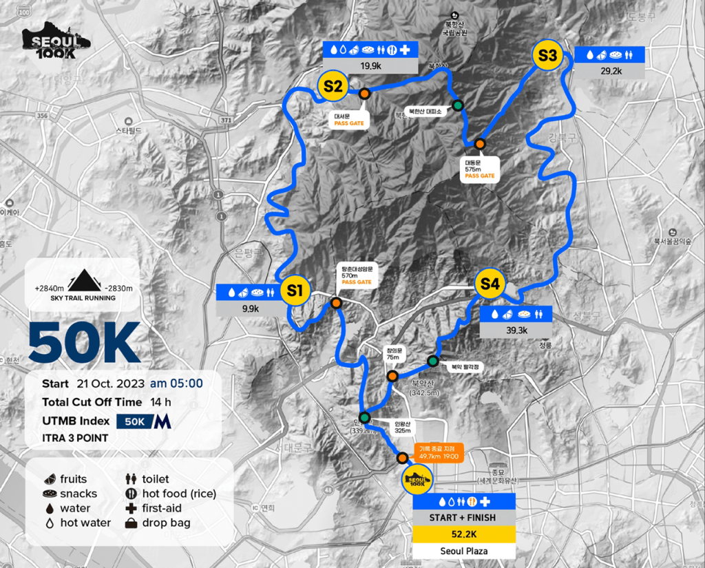 The 10K looked less exciting so I decided to sign-up for the 50K, which looked tough: 3048m of elevation over 50 km with a 14 hour cut off. The course was 52.2 km long which was odd, but once I ran it I understood. It was not going to be easy, but if I had 14 hours I could probably finish it. This was all last minute, so I was going to have to rely on the training I had already done for the Chicago Marathon. A sort of hiking tour around Seoul!