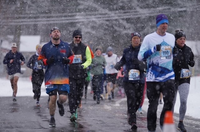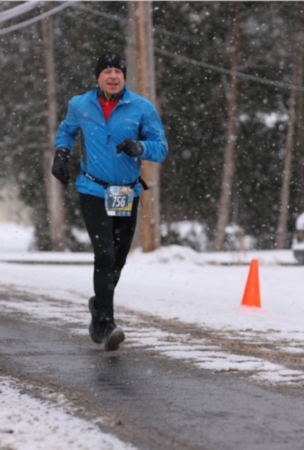 Running the race was not only an opportunity to explore a new region, but also get back to pushing effort in a race environment (got a bit lazy over the winter). Two loops is psychologically hard, especially when you see the Quarter marathon participants peel off for the finish. My second loop was tough for me, as I was cold, feet quite wet, and when the snowstorm started with the snow blowing in my face, I admit a few f-bombs were dropped. However, the spirit of fellow runners, the community, and the fact that it was a well-organized race made it a very positive experience! Coming into the hard-standing race HQ, they had warming stations, a fire pit for roasting marshmallows, and volunteers giving out the cookies, subs from Wegmans, donuts, and chips. Awards for overall and AG were announced. I was still out running when Paul won his AG and collected his coaster, but he cheered me on when I received my 3rd in AG award. A fun race with a big heart (and a Big selfie-worthy inflatable Yeti)!