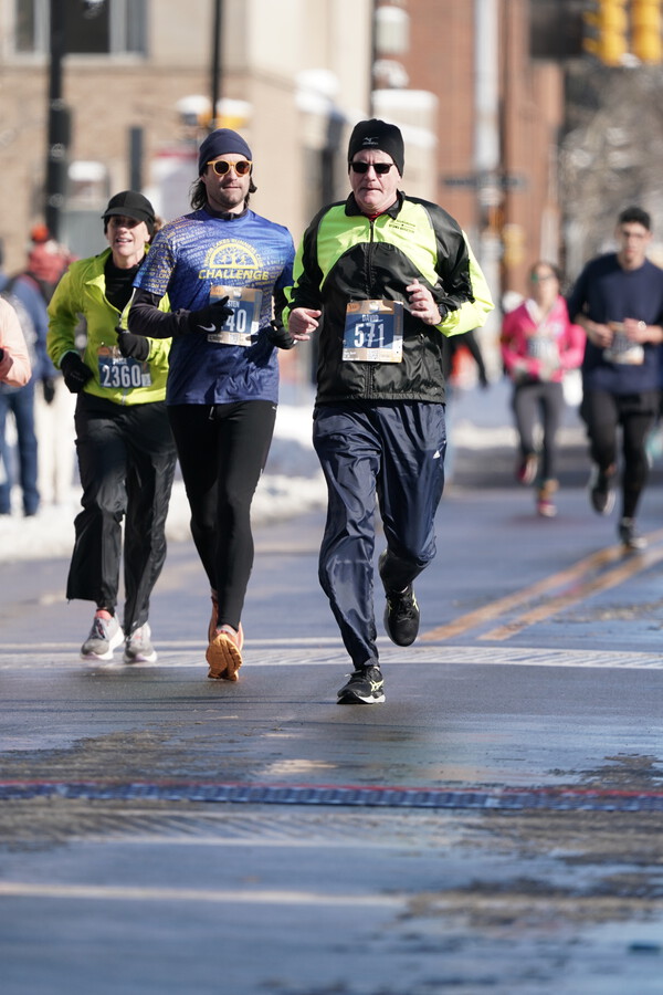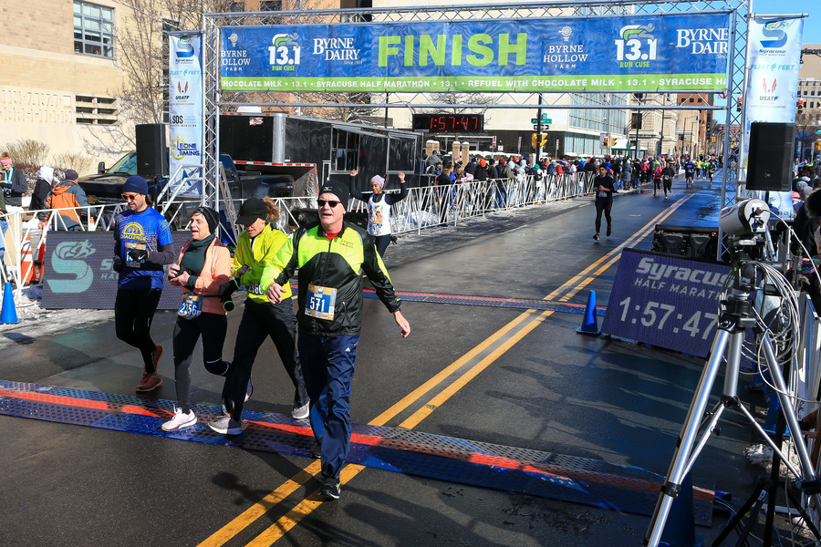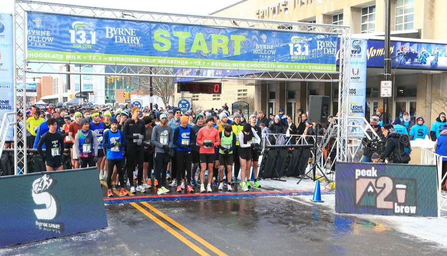 Syracuse had 8cm of snow the day before, which impacted road conditions on race day. Actual race day started out -9C but sunny, and warmed up as the race progressed. Nice winter morning for a run.