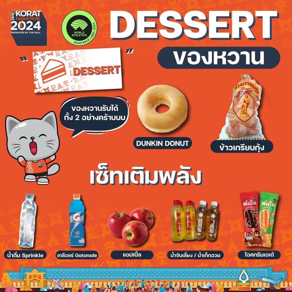 Racekit pick-up was at The Mall which is a huge shopping mall. They were also the presenting sponsor. We walked the 2.3km to the mall and found an efficient race kit pick-up in the centre of the mall. No lines, some giveaways, a large poster with all the runnersβ names on it and a mascot. The mascot was a Korat Cat. Korat is famous for the Korat Cat. A breed of cat from Korat city which is now found all over the world.