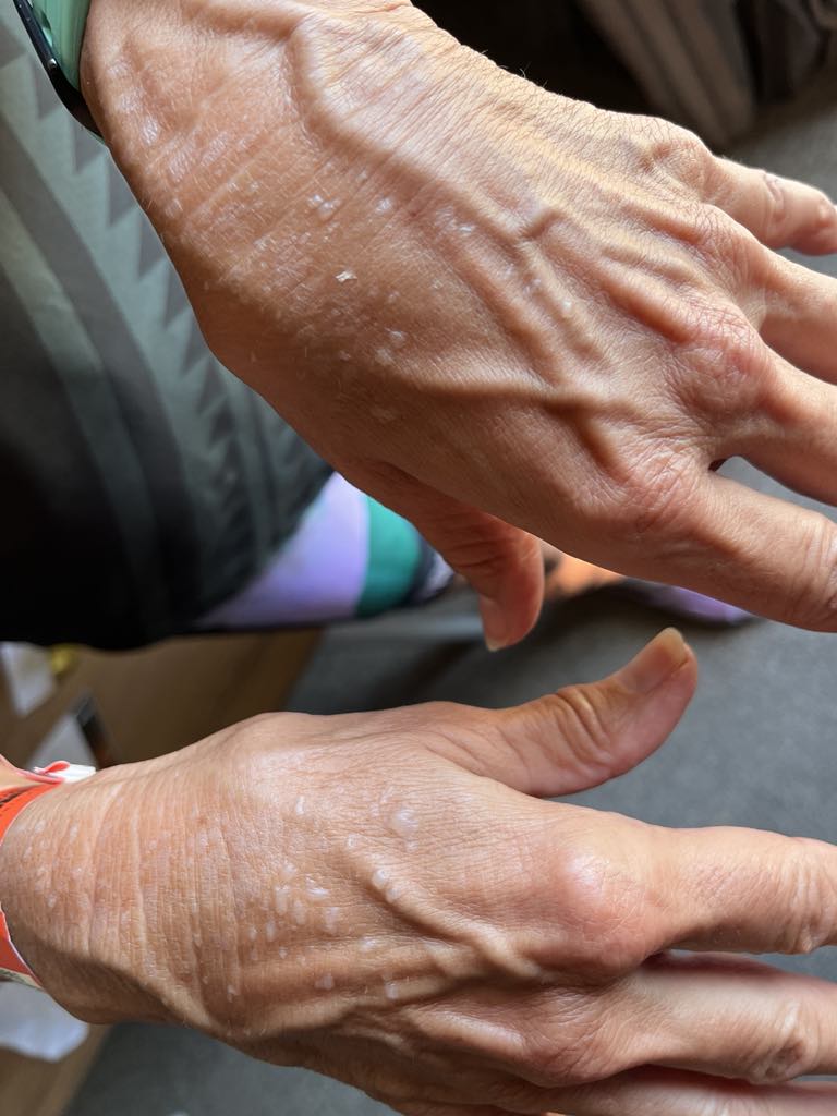 The first part of the run seemed ok, but I did make one porta potty stop – after that, the long, gradual slopes started and were tough to run. Most people walked as I did. I filled my new ice-pocket hat with ice as much as possible, and did walk when I felt like I needed to regroup. The heat was really getting to me. I did my best to keep the fuel intake going and did manage to use up 5 gels – 2 of which were caffeinated. I also ate a few chips and oranges along the way. The most notable part about the run was how compassionate and encouraging the volunteers were, especially the women – many of whom I suspect were my age or younger. It was amazing.