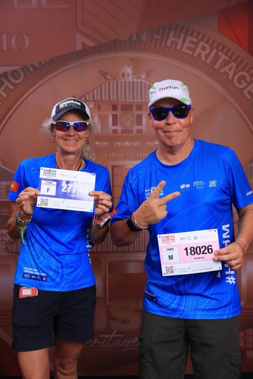 Once we had that worked out we checked out the expo. A race official came over and asked us if they could take a picture. We were rushed to the front of a line of people getting pre-race pictures so they could take ours. A second photographer asked us to pose by the race signs. By the time we got back to our hotel our pictures along with the four other non Vietnamese runners we saw at the pick up were featured on their Facebook page with the message “the international runners have arrived” We felt like Kenyans! Unfortunately, we don’t run like them!