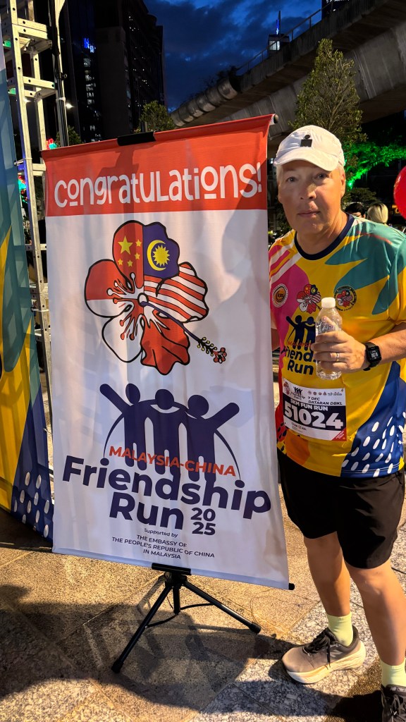 We found ourselves in Kuala Lumpur on a weekend so Harold did a google search and came up with the Malaysia China Friendship Run on Sunday morning. There was a 7K, a 5K and a 3K. The start was in a park only 2 km from our hotel. The race was untimed but you got a medal and a shirt all for the low price of $17 Canadian each.