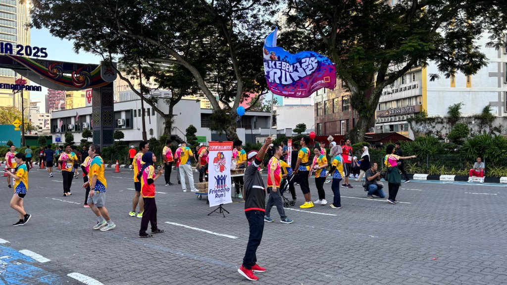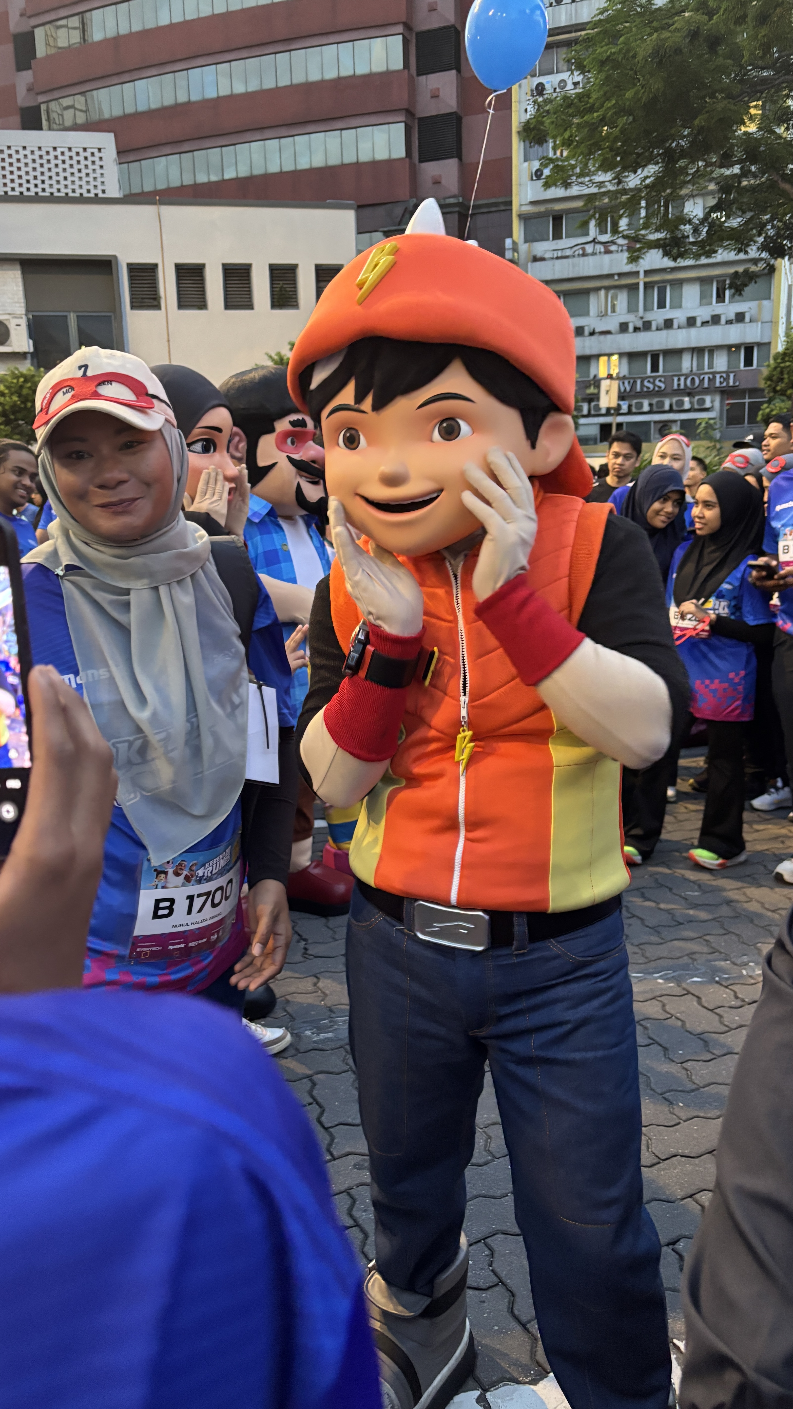 The race started at 7:00 am and the hotel was less than 2 km from the start so we walked there. At races here most people run in the race shirt. The more serious runners don’t. Usually we don’t either but it was only 5k and I was not going to walk around Kuala Lumpur in a singlet. We headed in what we thought was the correct direction and we eventually started to see other people in race shirts heading in the same direction. Always a good sign. We were a little concerned because they all had different race shirts than ours. They were purple and we were yellow.
