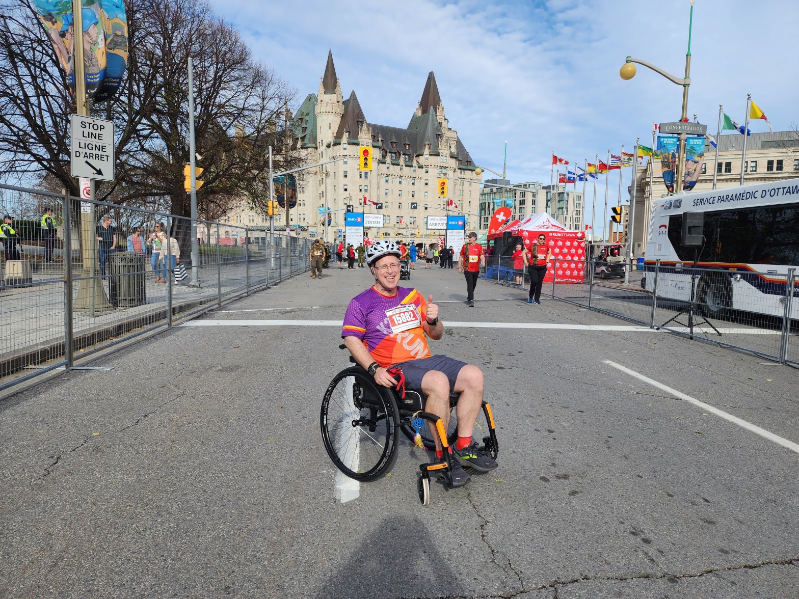 Face Ran the 5K and Rolled the 10K in his new wheelchair at the Canada Army Run. Next up for Face Ottawa Race Weekend!